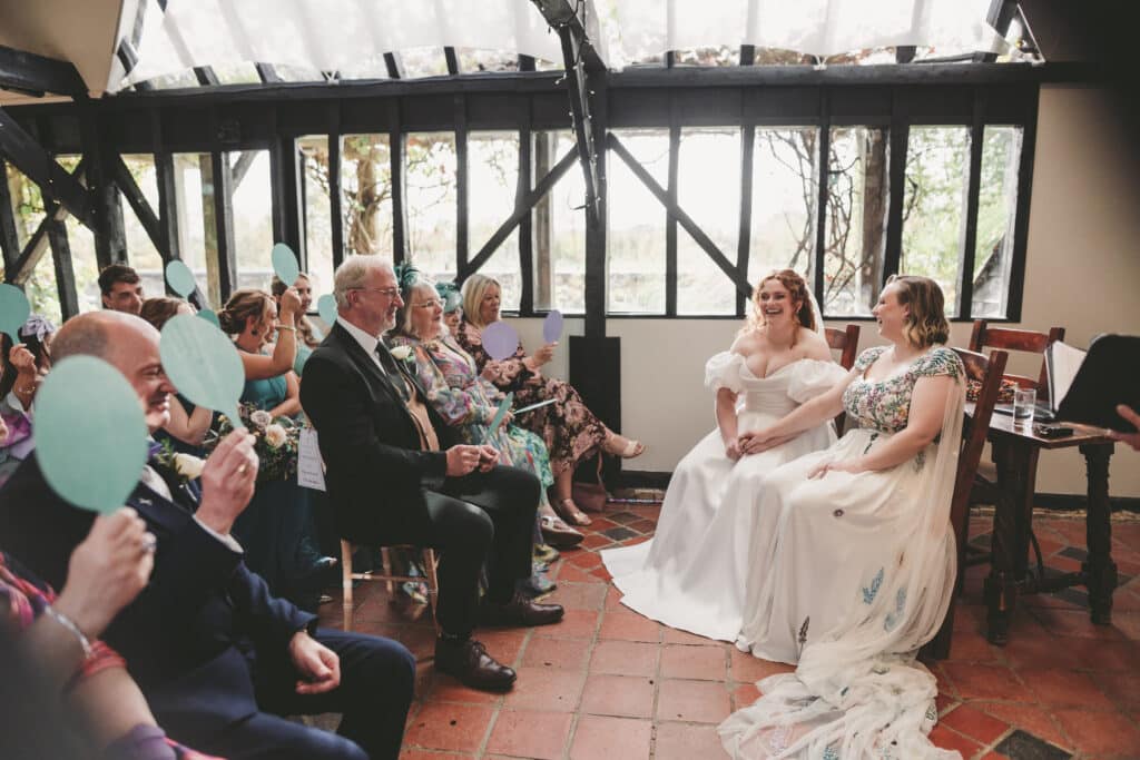 We had a private first look before we signed the Register with our parents as witnesses. We then had a full ceremony with everyone present. It was very light-hearted, funny, and quite interactive!