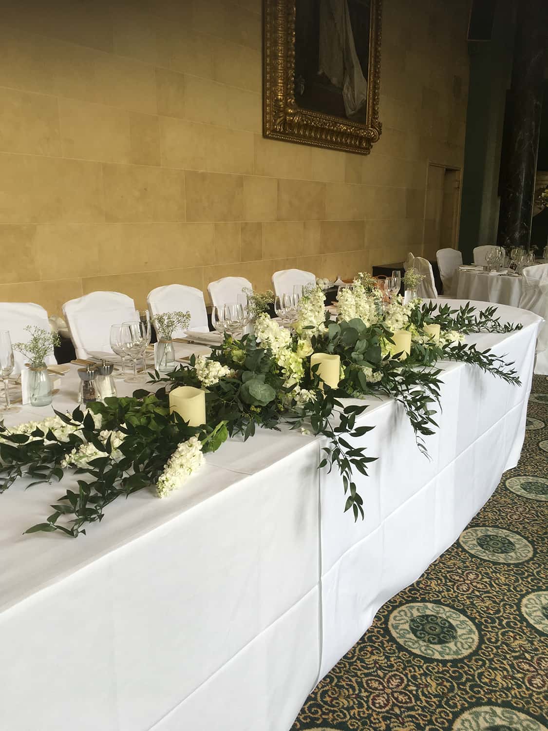 Once we have our official photos back I can pass some along, they really made such a huge difference to the venue and the small touches on the tables, flowers decorating the summer house, in the pond, our bouquets…marvellous. Words cannot describe how pleased we are. The top table flowers were a true piece of art!